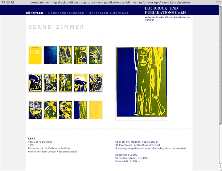 ------ d.p. druck- und publikations gmbh / -------- internetauftritt druckgrafik, künstlerbücher ------ status: online 2006 - 2009 ---