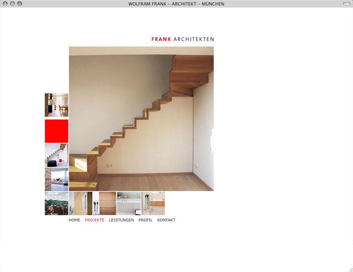 ------------ frank architekten / --------------- internetauftritt architekturbüro ---------------------------------- status: online - 2009 --- ------ konzept, design und programmierung: petra fürst ------------------------------------------------------------------- --------------------------------------------------------------------------