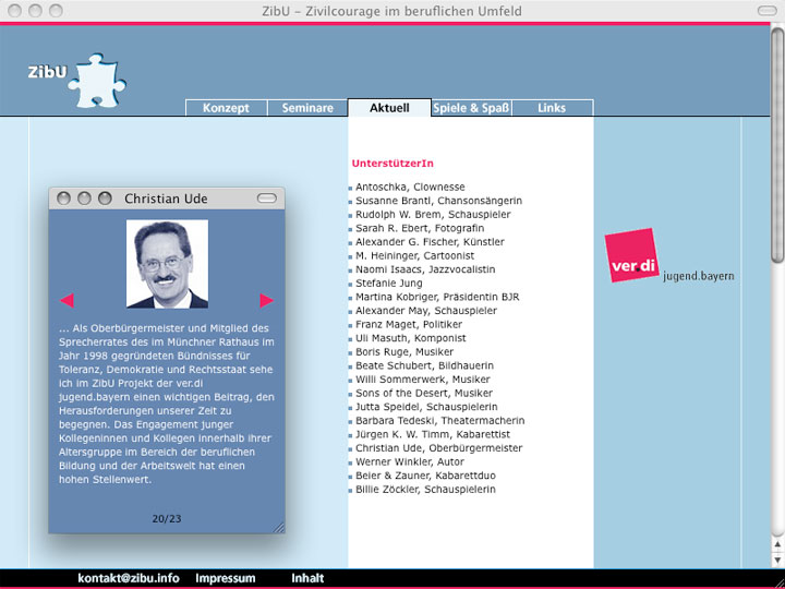 ------------ zibu - zivilcourage im beruflichen umfeld / --------------- internetauftritt verdi--------- status: offline --- ---------------------------------------------- design, programmierung: christine zoche ----------------------------